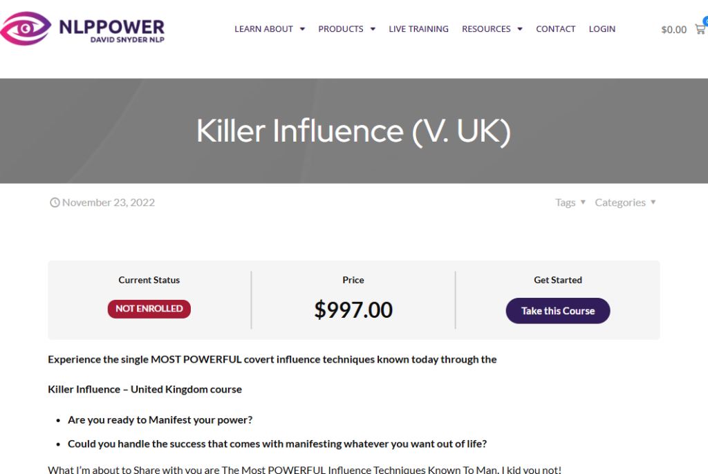 Killer Influence is a structured psychological influence system that teaches how people unconsciously respond to language, tone, authority signals, and emotional framing. The UK 2022 version refines these techniques with modern examples, updated frameworks, and practical demonstrations.
